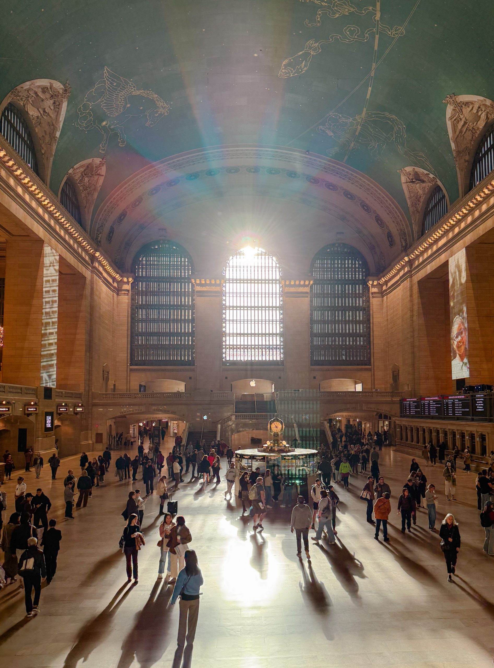 De centrale hal (Main Concourse) met het turquoise plafond vol sterrenbeelden is adembenemend, vooral wanneer het zonlicht door de grote ramen naar binnen valt. Het geeft dat filmische, bijna tijdloze gevoel dat je kent uit talloze films en series.